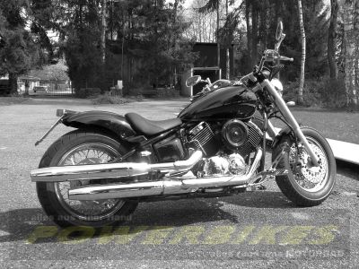 Powerbikes-Yamaha XVS1100 Drag Star: Customblinker, Fatbar-Lenker, Custom-Griffe, K&N Luftfilter, Vergaserabstimmung angepasst,
